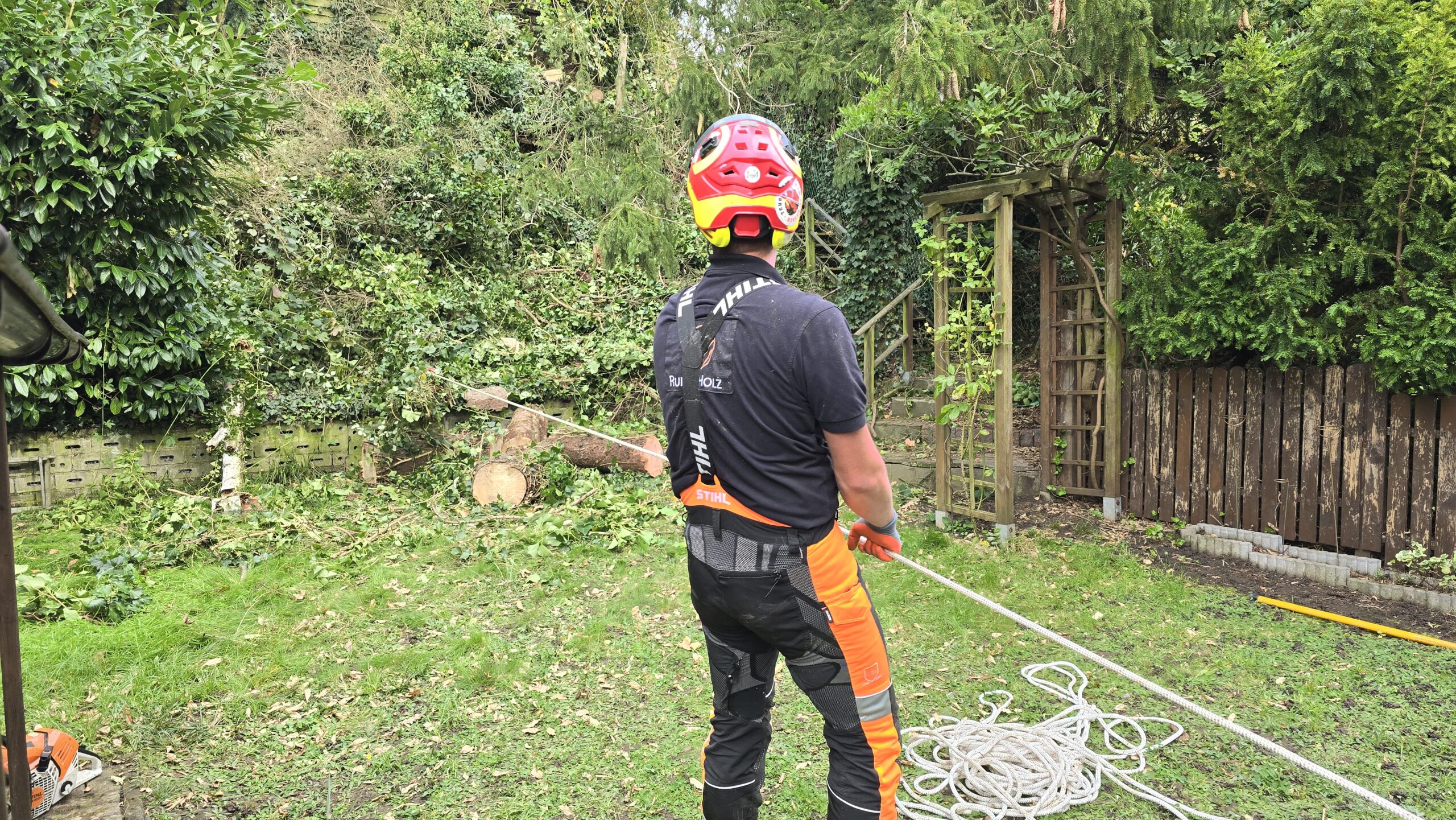 Die Arbeit als Baumpfleger erfordert bestimmte Zertifizierungen. Wir verfügen über SKT-A und SKT-B Zertifikate, daher ist es uns erlaubt, Bäume hinaufzusteigen und unsere Arbeit von oben nach unten zu verrichten. Das Zertifikat AS Baum 1 bescheinigt die Fähigkeit zum ordnungsgemäßen Umgang mit der Kettensäge am stehenden und liegendem Holz.